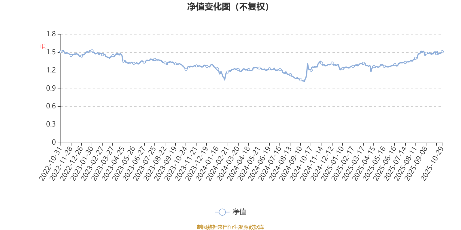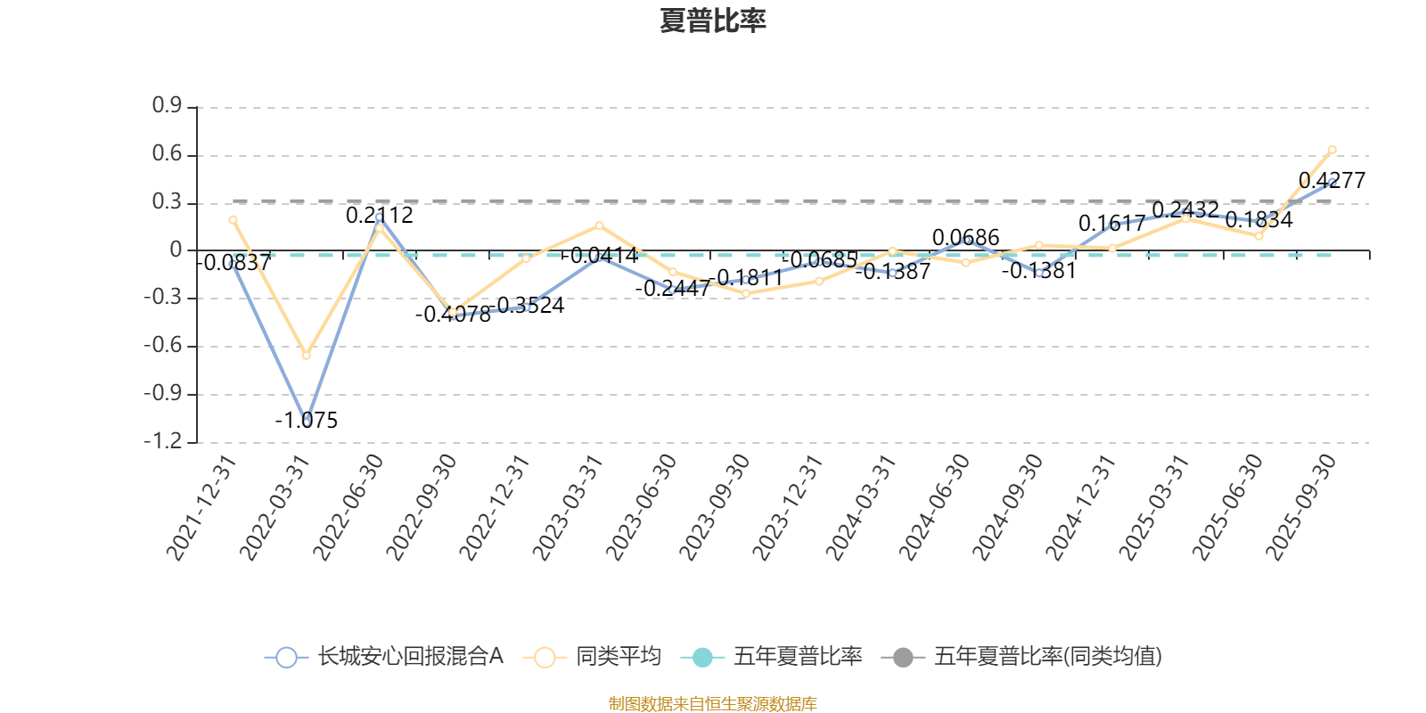 截至9月30日,基金近三年夏普比率为0.1276,位于同类可比基金1093/1285。