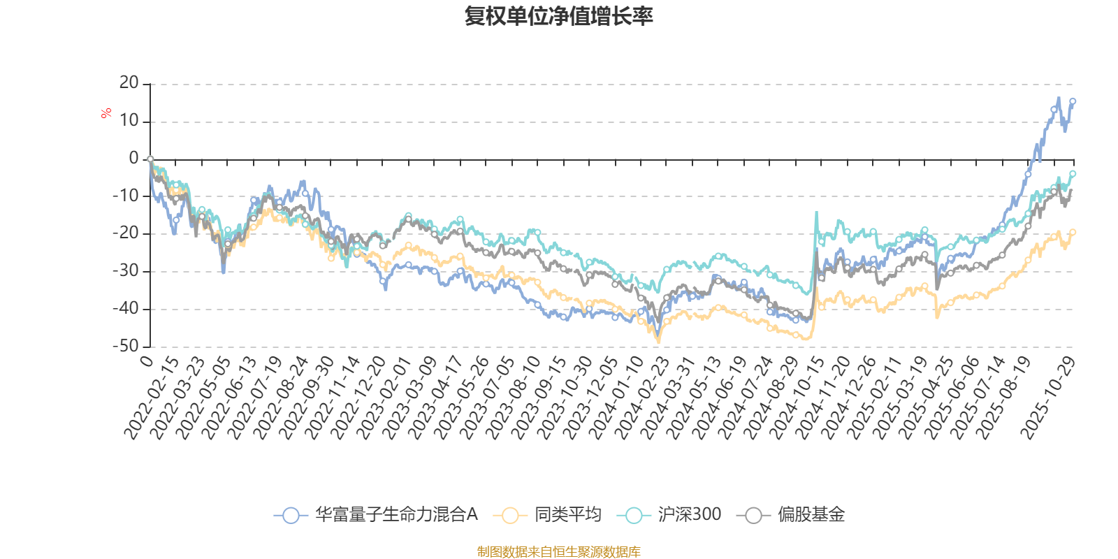 截至10月29日,华富量子生命力混合A近三个月复权单位净值增长率为27.89%,位于同类可比基金103/689;近半年复权单位净值增长率为58.67%,位于同类可比基金52/688;近一年复权单位净值增长率为62.74%,位于同类可比基金45/657;近三年复权单位净值增长率为50.21%,位于同类可比基金39/364。