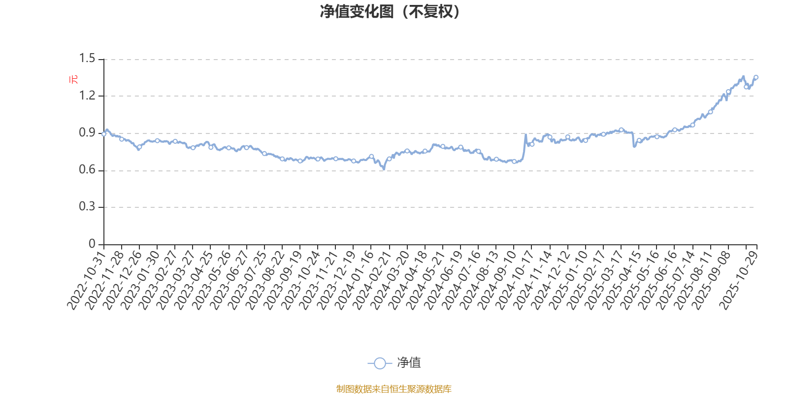 该基金持股集中度较高。截至2025年三季度末,基金十大重仓股分别是先导智能、当升科技、皓元医药、新强联、绿的谐波、金风科技、安集科技、南钢股份、经纬恒润、吉比特。