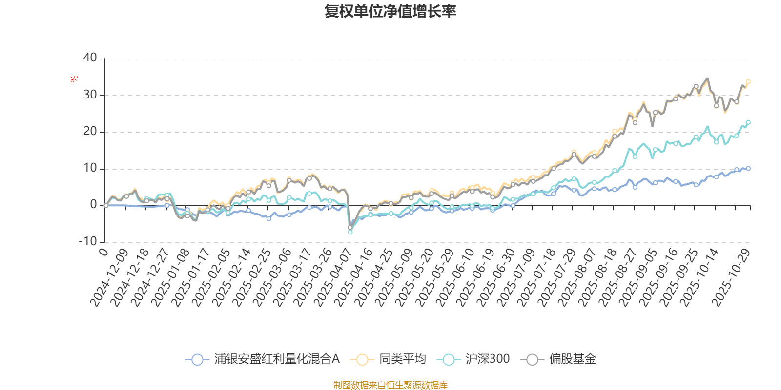 截至10月29日,浦银安盛红利量化混合A近三个月复权单位净值增长率为5.66%,位于同类可比基金512/621;近半年复权单位净值增长率为13.07%,位于同类可比基金550/621。