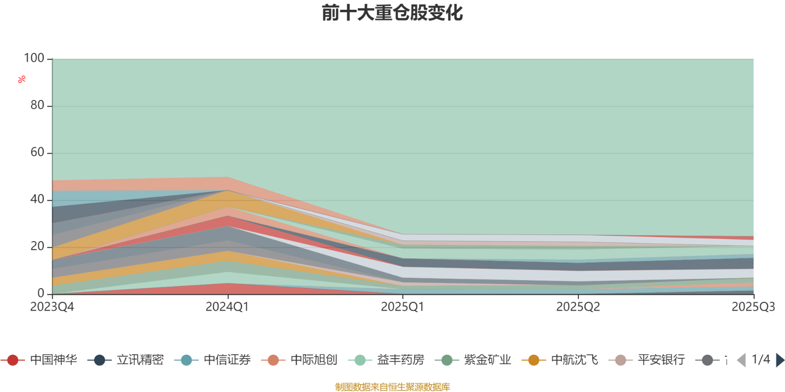 截至2025年三季度末,基金十大重仓股分别是宁德时代、贵州茅台、兴业银行、中国平安、紫金矿业、中际旭创、中信证券、东方财富、新易盛、立讯精密。