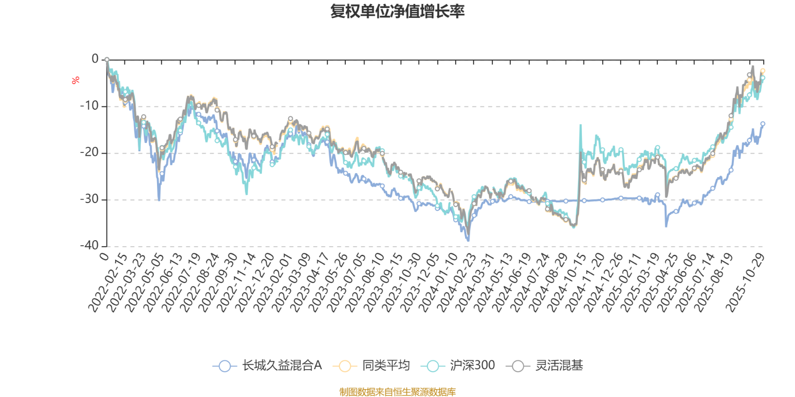 截至10月29日,长城久益混合A近三个月复权单位净值增长率为15.16%,位于同类可比基金530/1287;近半年复权单位净值增长率为28.18%,位于同类可比基金562/1287;近一年复权单位净值增长率为23.55%,位于同类可比基金658/1287;近三年复权单位净值增长率为15.10%,位于同类可比基金701/1286。