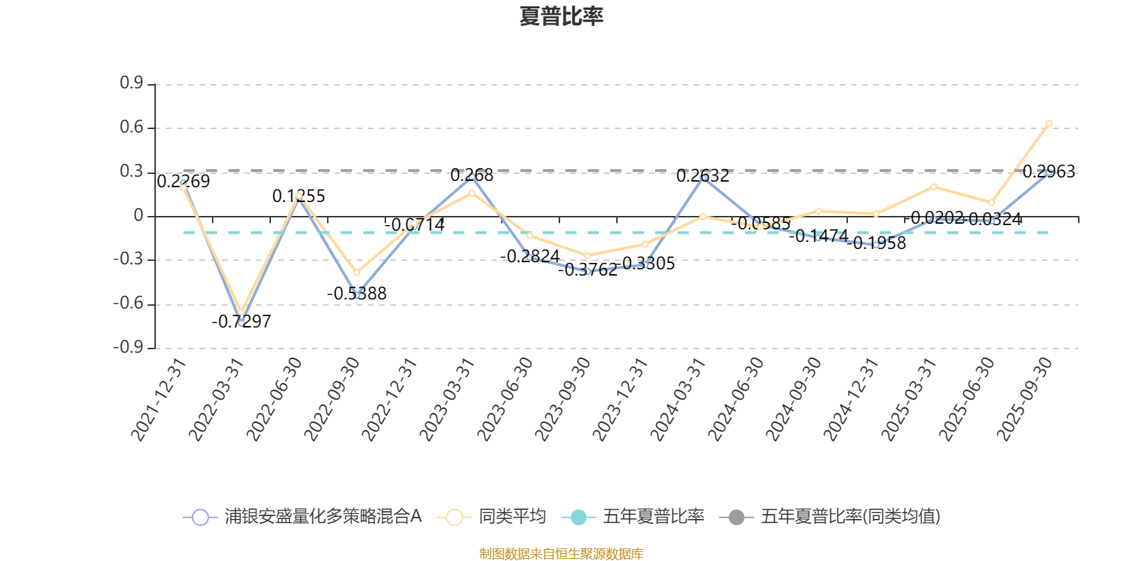 截至9月30日,基金近三年夏普比率为-0.0583,位于同类可比基金1208/1285。