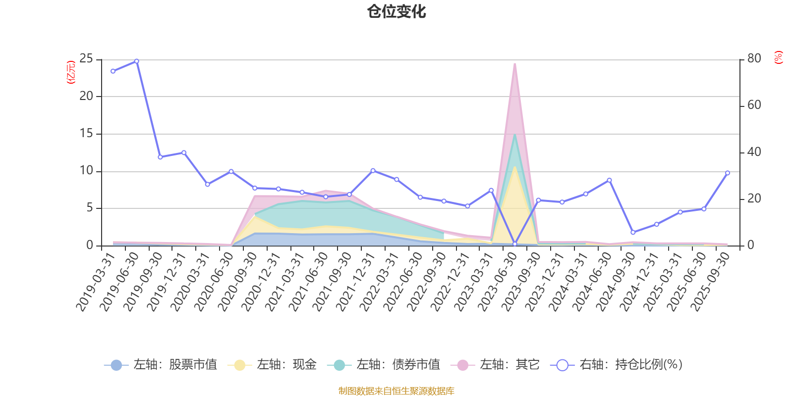 据定期报告数据统计,近三年平均股票仓位为17.24%,同类平均为72.35%。2019年上半年末基金达到79.24%的最高仓位,2023年上半年末最低,为0.78%。