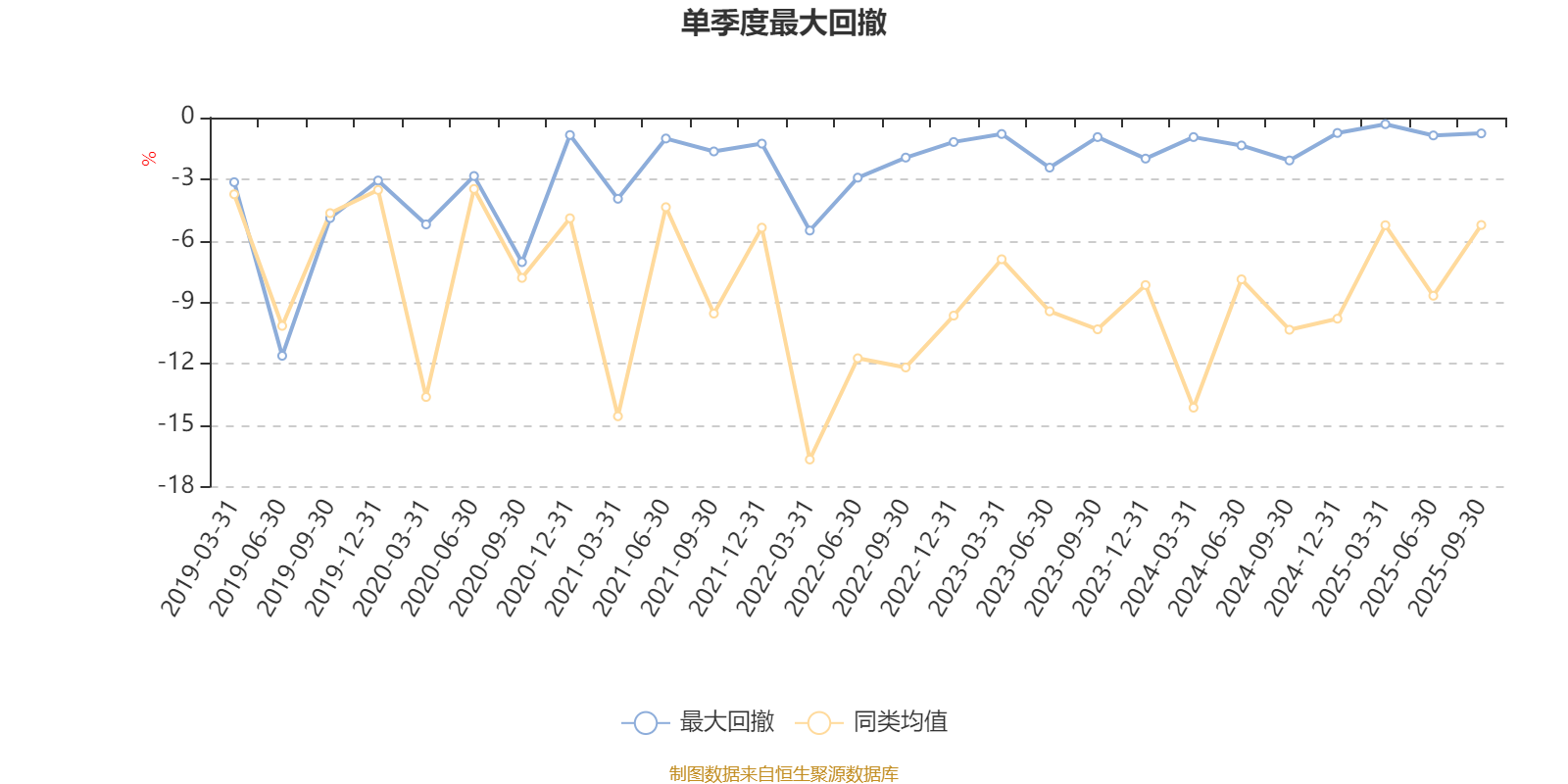 截至10月29日,基金近三年最大回撤为4.69%,同类可比基金排名75/1274。单季度最大回撤出现在2019年二季度,为11.62%。