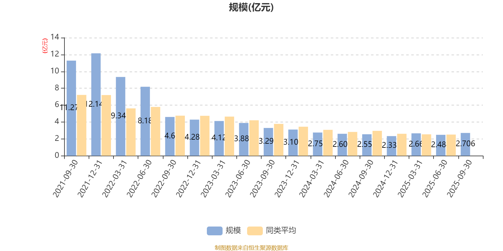 AI基金长城竞争优势六个月混合A(011455)披露2025年三季报,第三季度基金利润4647.12万元,加权平均基金份额本期利润0.1452元。报告期内,基金净值增长率为19.33%,截至三季度末,基金规模为2.71亿元。