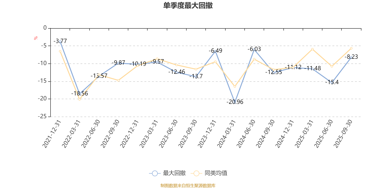 截至10月29日,基金近三年最大回撤为39.2%,同类可比基金排名332/513。单季度最大回撤出现在2024年一季度,为20.96%。