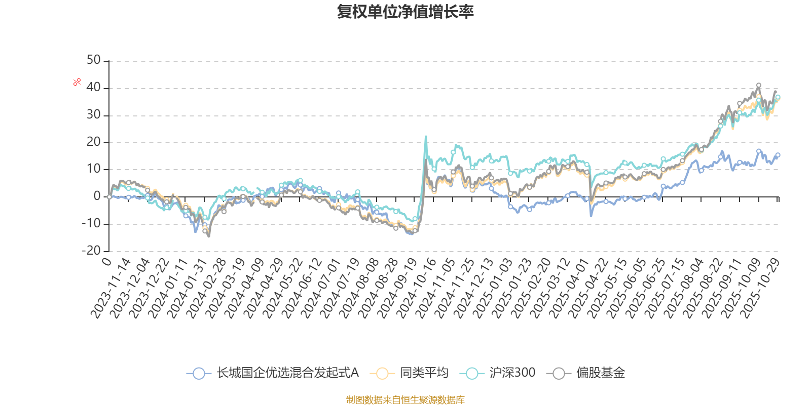 该基金属于偏股混合型基金。截至10月29日,单位净值为1.154元。基金经理是储雯玉,目前管理的2只基金近一年均为正收益。其中,截至10月29日,长城久恒混合A近一年复权单位净值增长率最高,达68.16%;长城国企优选混合发起式A最低,为8.91%。