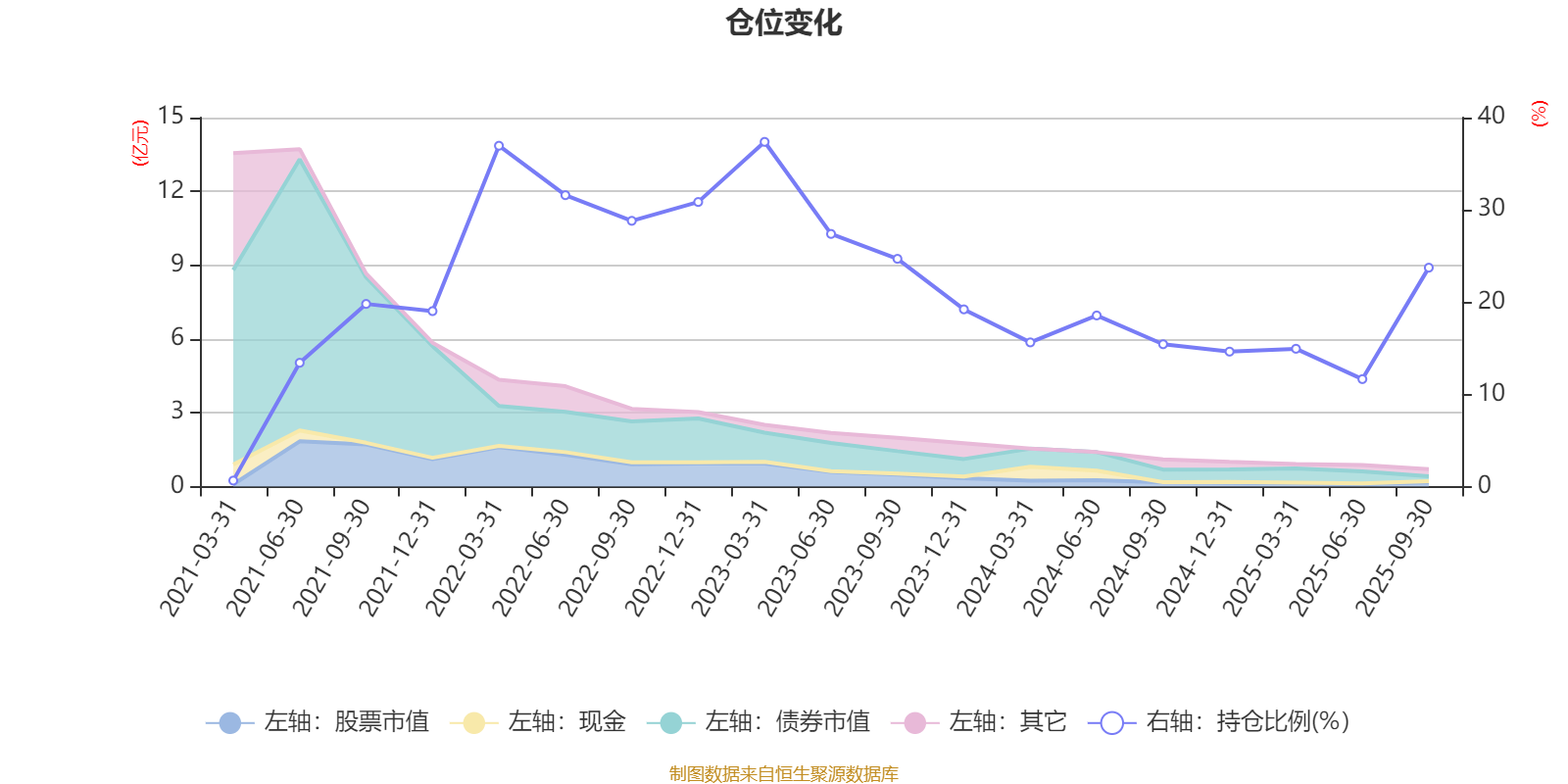 据定期报告数据统计,近三年平均股票仓位为21.17%,同类平均为19.14%。2023年一季度末基金达到37.37%的最高仓位,2021年一季度末最低,为0.65%。