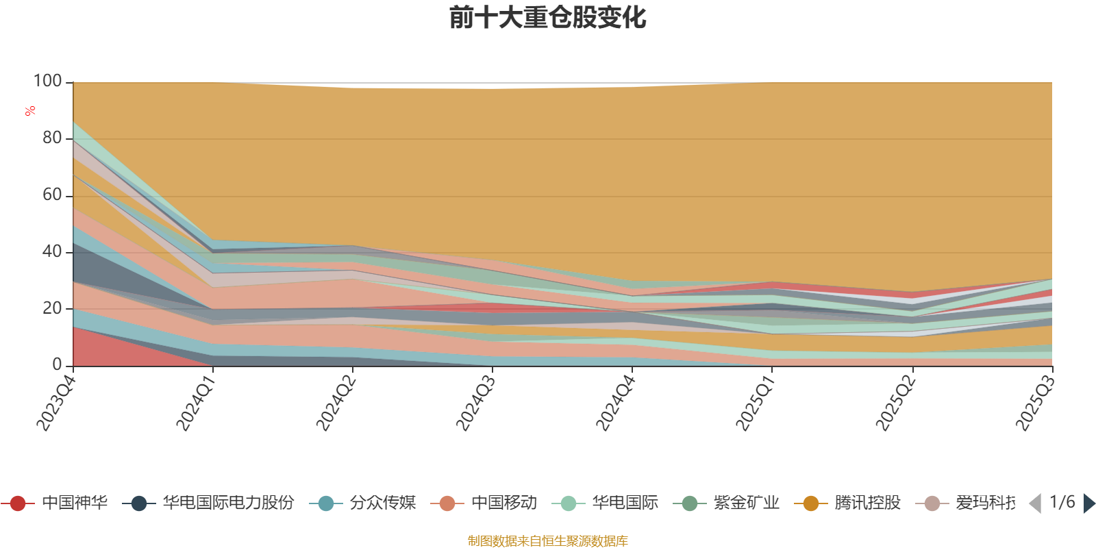 截至2025年三季度末,基金十大重仓股分别是腾讯控股、中国平安、恺英网络、紫金矿业、宁德时代、安踏体育、中国移动、华电国际、中国人寿、歌尔股份。