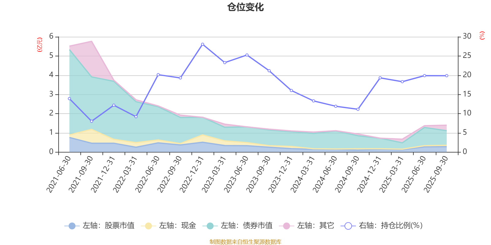 据定期报告数据统计,近三年平均股票仓位为18.96%,同类平均为19.14%。2022年末基金达到28.05%的最高仓位,2021年三季度末最低,为8.02%。