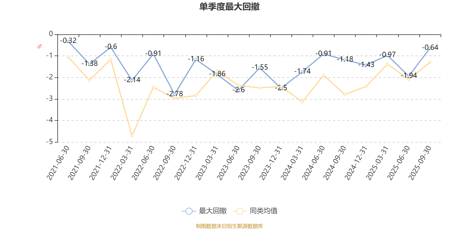 截至10月29日,基金近三年最大回撤为5.49%,同类可比基金排名213/534。单季度最大回撤出现在2022年三季度,为2.78%。