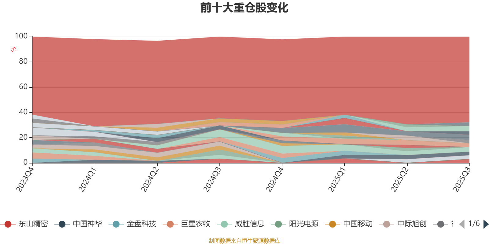 截至2025年三季度末,基金十大重仓股分别是中芯国际、新易盛、宁德时代、东山精密、中国宏桥、杰瑞股份、徐工机械、腾讯控股、亿纬锂能、牧原股份。