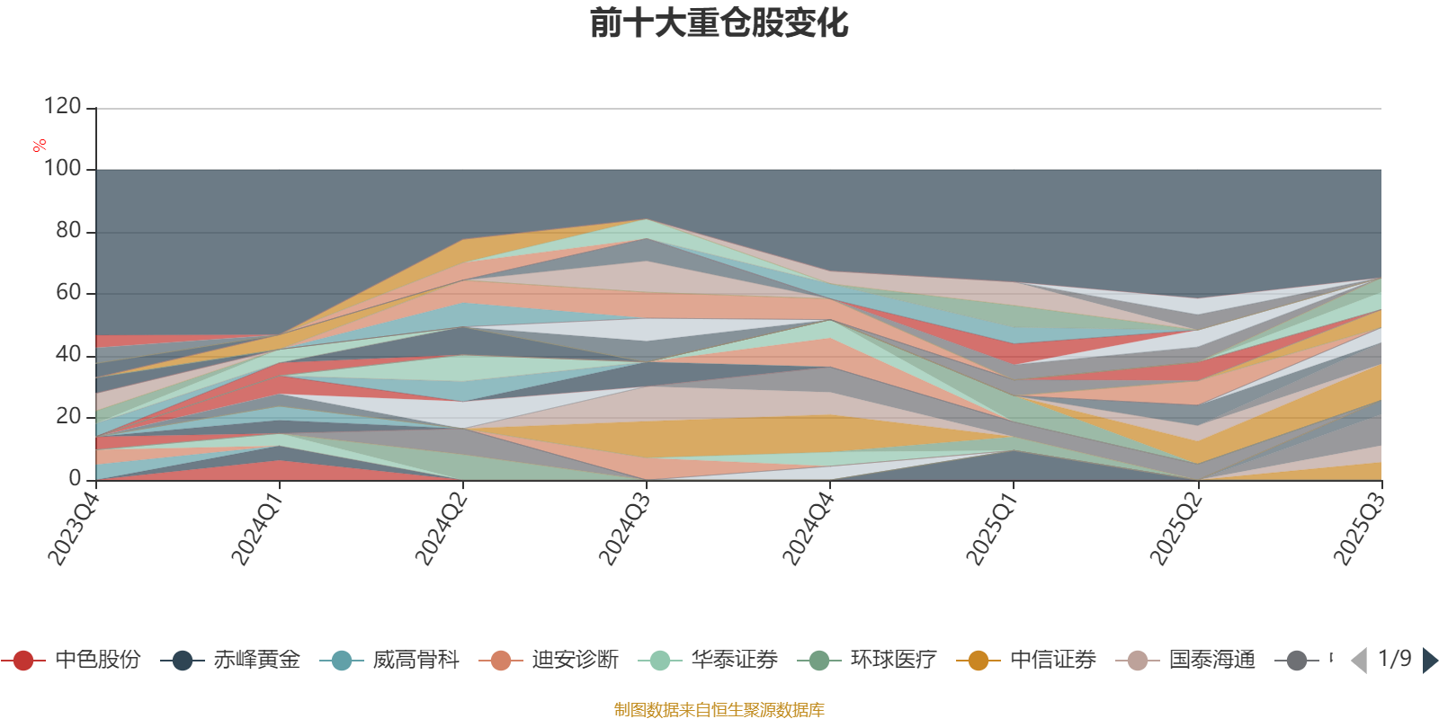 截至2025年三季度末,基金十大重仓股分别是招金矿业、中国移动、香港交易所、永兴材料、中信证券、招商证券、国泰海通、上海银行、光大银行、盐津铺子。