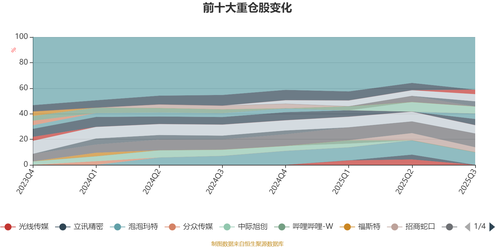 截至2025年三季度末,基金十大重仓股分别是腾讯控股、泡泡玛特、贵州茅台、阿里巴巴-W、贝壳-W、宁德时代、金山办公、滨江集团、招商蛇口、舍得酒业。
