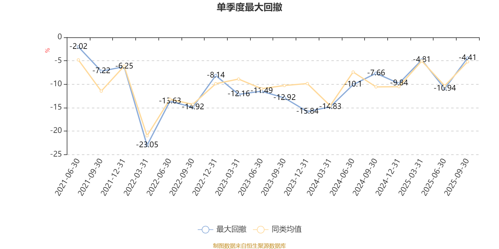 截至10月29日,基金近三年最大回撤为40.91%,同类可比基金排名98/124。单季度最大回撤出现在2022年一季度,为23.05%。