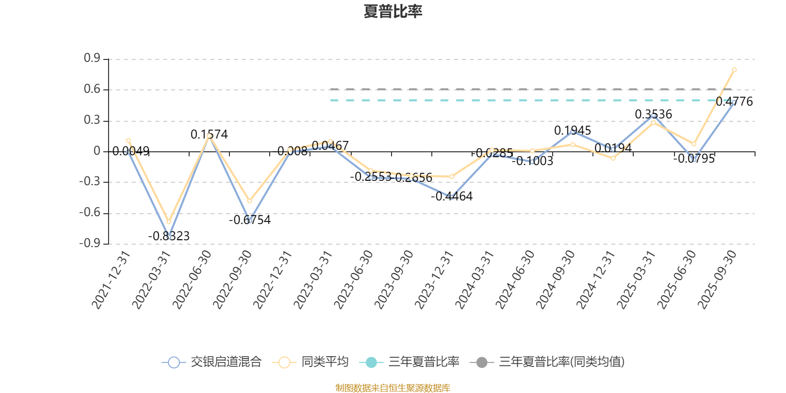 截至9月30日,基金近三年夏普比率为0.4974,位于同类可比基金83/125。