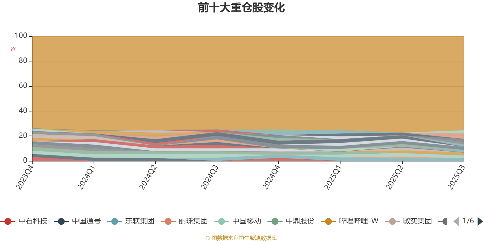 截至2025年三季度末,基金十大重仓股分别是江波龙、兆易创新、大唐新能源、哔哩哔哩-W、经纬恒润、中国移动、东软集团、雅迪控股、德赛西威、华虹半导体。