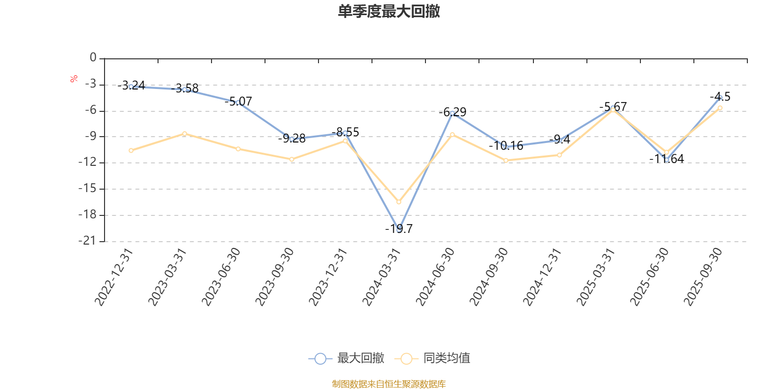截至10月29日,基金近三年最大回撤为30.11%,同类可比基金排名127/513。单季度最大回撤出现在2024年一季度,为19.7%。
