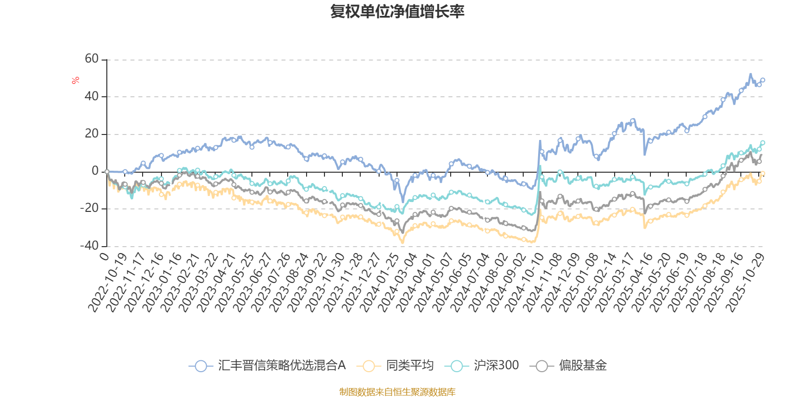 截至10月29日,汇丰晋信策略优选混合A近三个月复权单位净值增长率为12.11%,位于同类可比基金374/621;近半年复权单位净值增长率为26.88%,位于同类可比基金373/621;近一年复权单位净值增长率为34.32%,位于同类可比基金262/611;近三年复权单位净值增长率为50.61%,位于同类可比基金82/518。