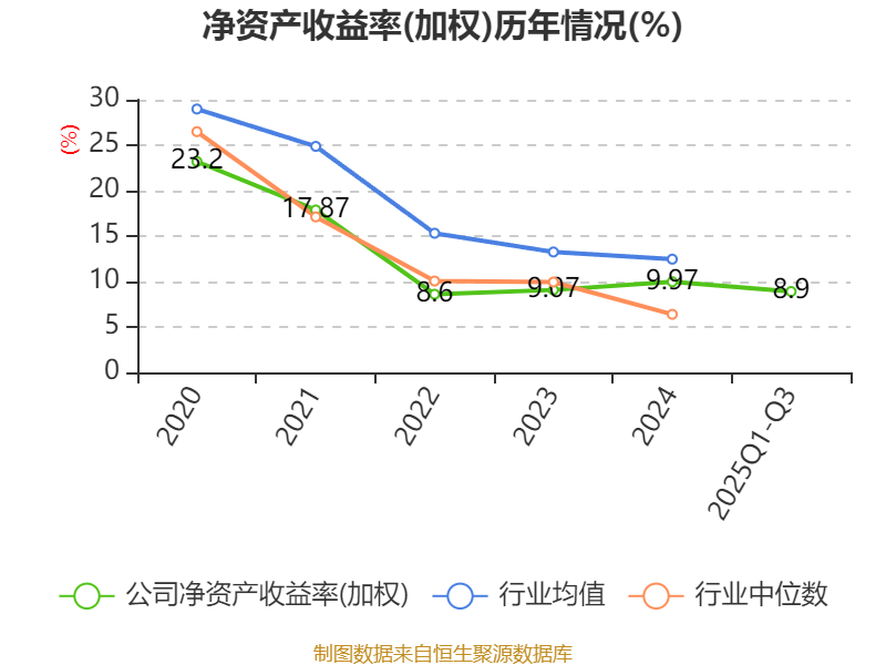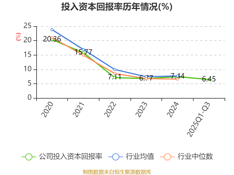盈利能力方面, 2025年前三季度公司加权平均净资产收益率为8.9%,同比上升0.57个百分点。公司2025年前三季度投入资本回报率为6.45%,较上年同期上升0.31个百分点。