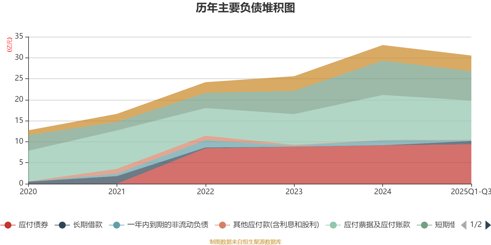 负债重大变化方面,截至2025年三季度末,公司应付票据及应付账款较上年末减少13.01%,占公司总资产比重下降2.1个百分点;短期借款较上年末减少15.02%,占公司总资产比重下降1.84个百分点;一年内到期的非流动负债较上年末减少79.81%,占公司总资产比重下降1.37个百分点;长期借款占公司总资产的1.11%,上年末为0。