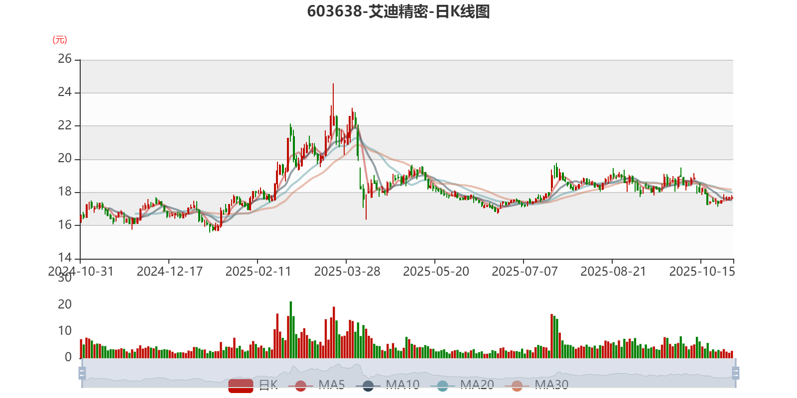 以10月30日收盘价计算,艾迪精密目前市盈率(TTM)约为38.69倍,市净率(LF)约3.98倍,市销率(TTM)约4.8倍。
