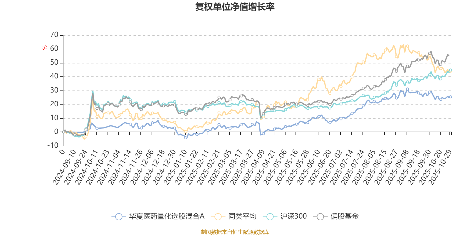 截至10月29日,华夏医药量化选股混合A近三个月复权单位净值增长率为2.13%,位于同类可比基金9/106;近半年复权单位净值增长率为22.61%,位于同类可比基金37/104;近一年复权单位净值增长率为19.92%,位于同类可比基金68/101。