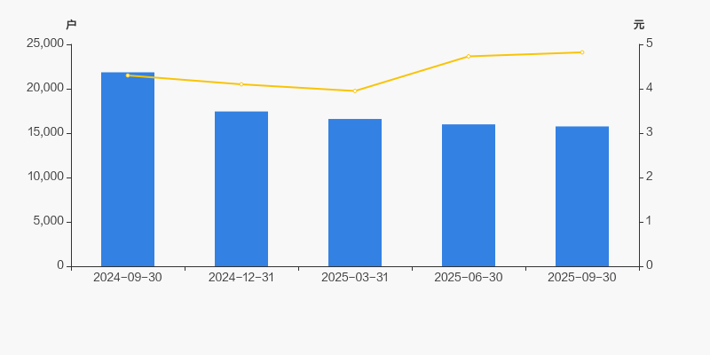自2024年9月30日以来,公司股东户数连续4期下降,截至目前减幅为27.91%。2024年9月30日至2025年9月30日区间股价上涨12.09%。