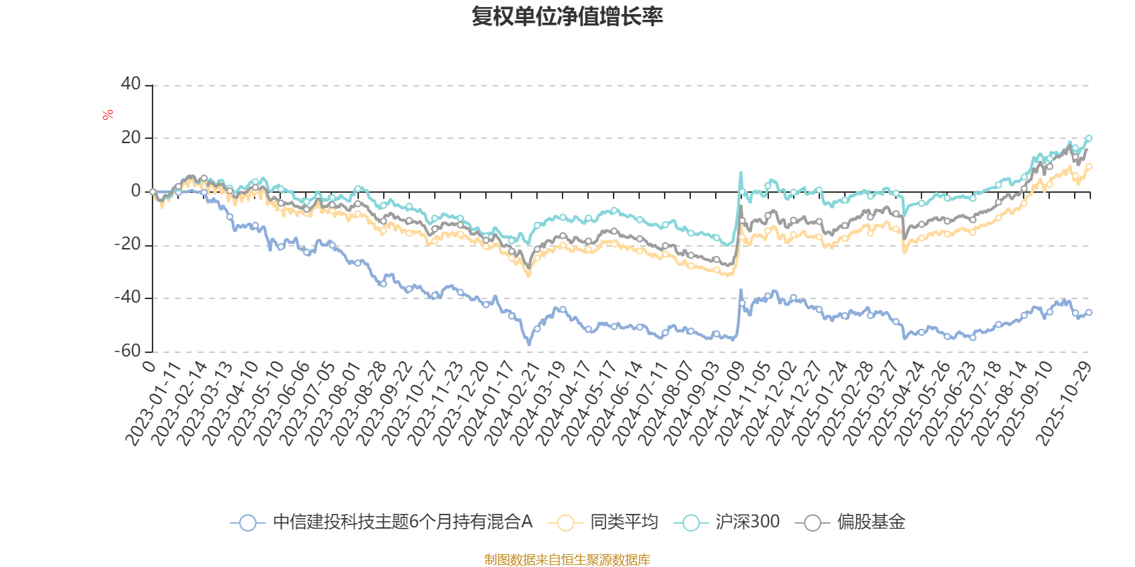 截至10月29日,中信建投科技主题6个月持有混合A近三个月复权单位净值增长率为7.83%,位于同类可比基金475/621;近半年复权单位净值增长率为15.54%,位于同类可比基金523/621;近一年复权单位净值增长率为-7.21%,位于同类可比基金608/611。