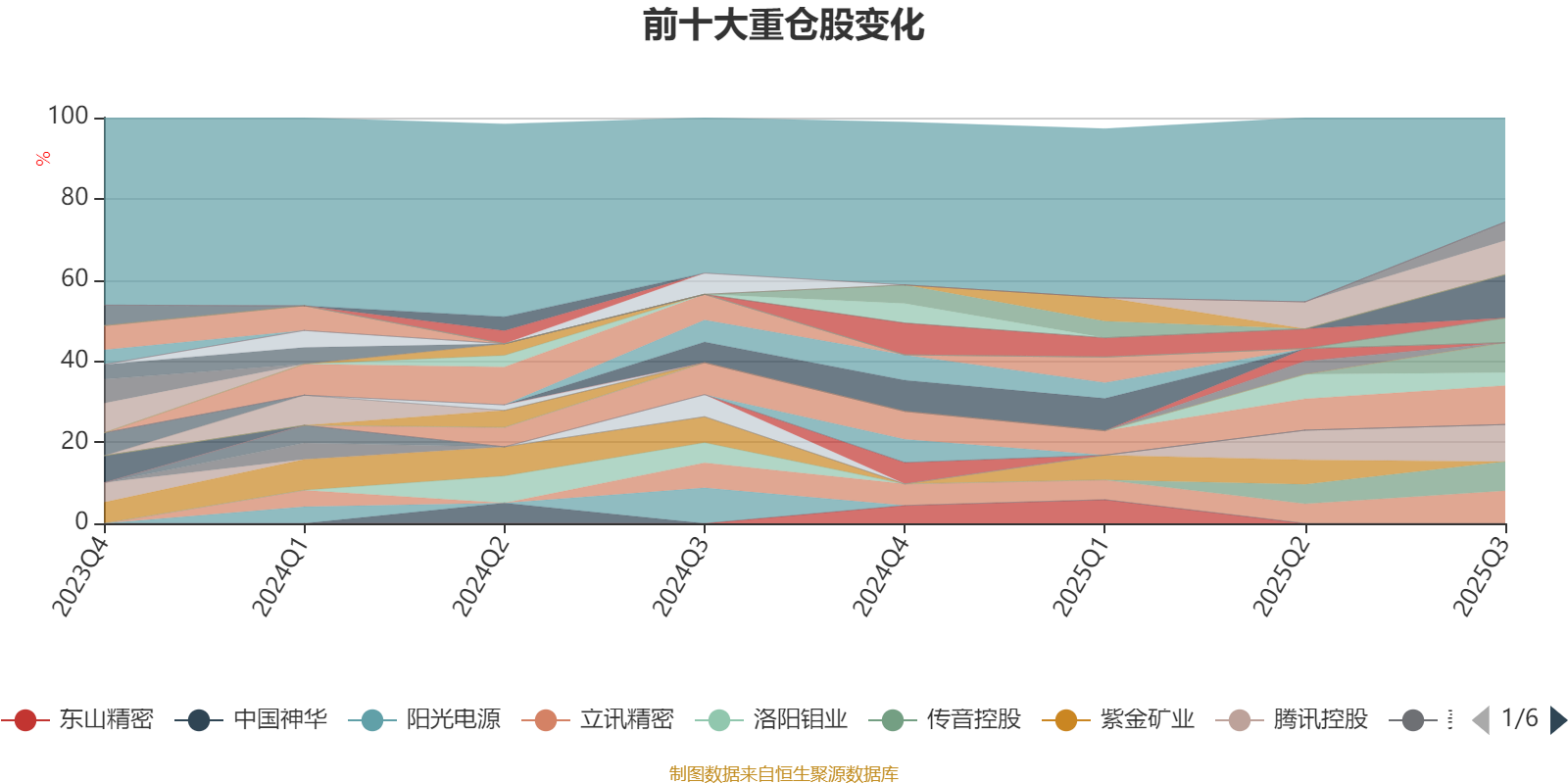 该基金持股集中度较高。截至2025年三季度末,基金十大重仓股分别是小米集团-W、宁德时代、腾讯控股、赛轮轮胎、立讯精密、途虎-W、传音控股、瑞丰新材、远大医药、人福医药。