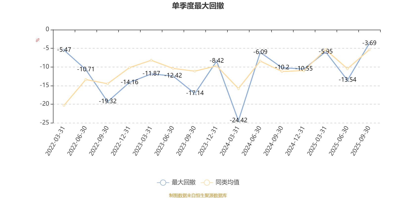 截至10月29日,基金近三年最大回撤为51.62%,同类可比基金排名244/251。单季度最大回撤出现在2024年一季度,为24.42%。