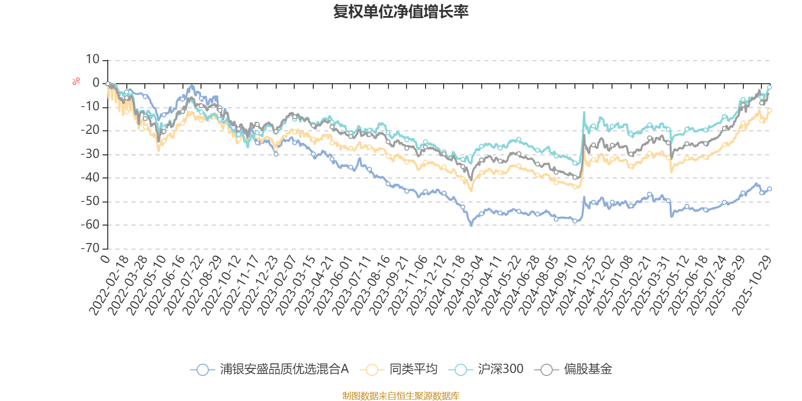 截至10月29日,浦银安盛品质优选混合A近三个月复权单位净值增长率为11.21%,位于同类可比基金180/265;近半年复权单位净值增长率为19.05%,位于同类可比基金211/265;近一年复权单位净值增长率为12.65%,位于同类可比基金237/265;近三年复权单位净值增长率为-27.96%,位于同类可比基金248/253。