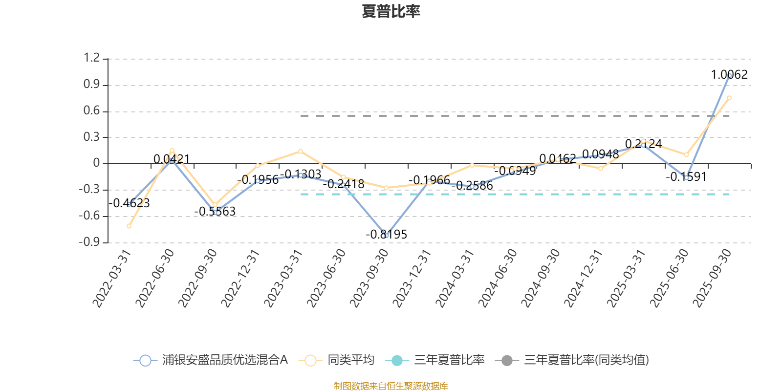 截至9月30日,基金近三年夏普比率为-0.3483,位于同类可比基金251/252。