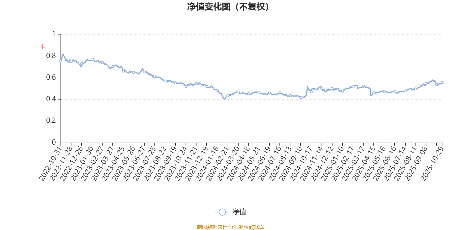 该基金属于偏股混合型基金。截至10月29日,单位净值为0.556元。基金经理是蒋佳良和李浩玄。