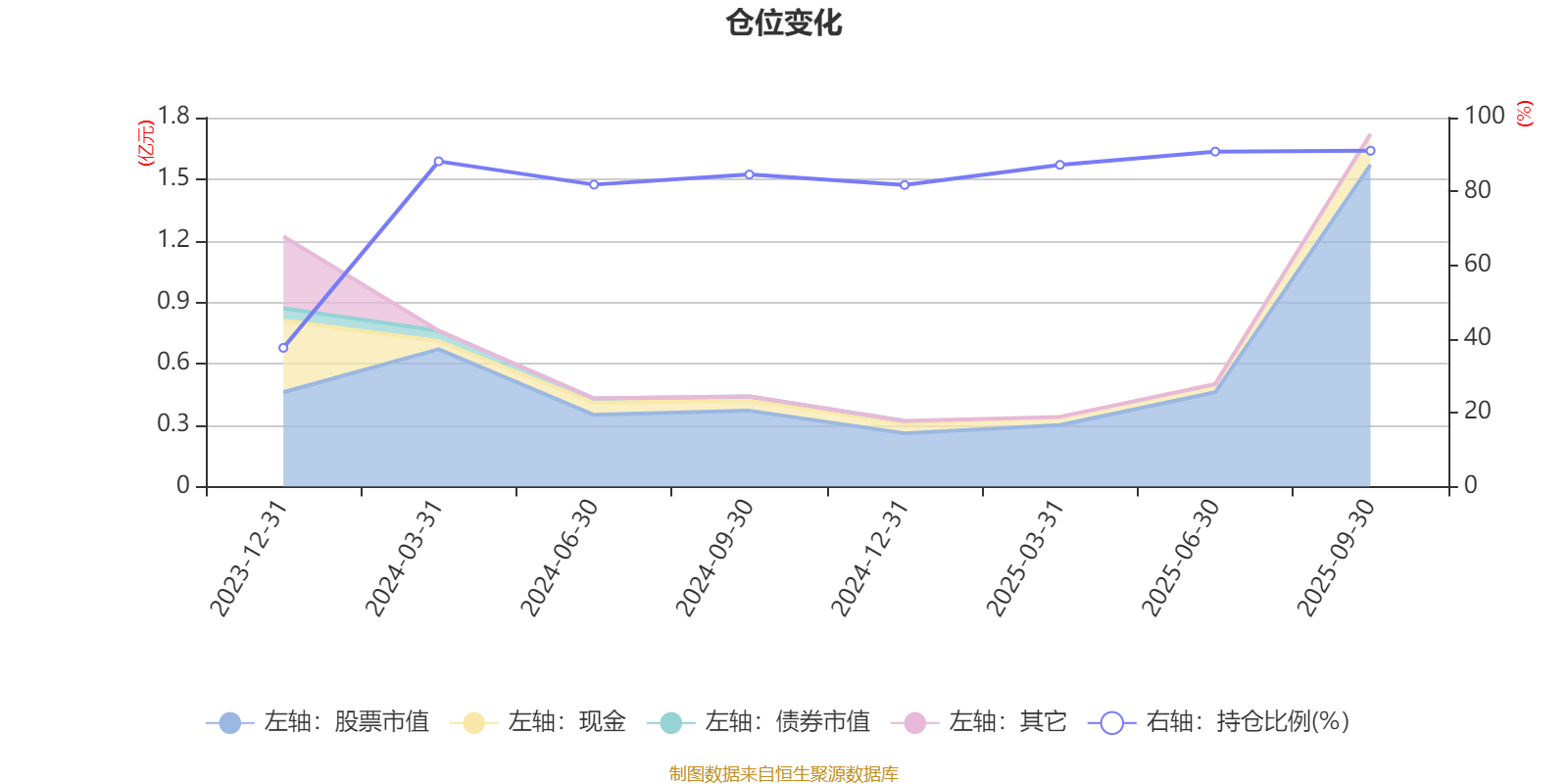 据定期报告数据统计,成立以来平均股票仓位为80.36%,同类平均为86.94%。2025年三季度末基金达到91.02%的最高仓位,2023年末最低,为37.61%。