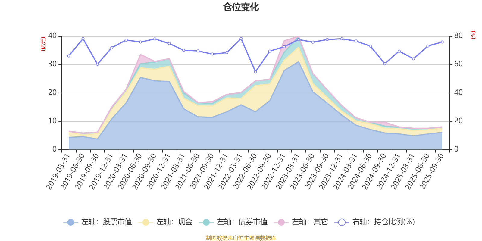 据定期报告数据统计,近三年平均股票仓位为72.85%,同类平均为72.35%。2022年一季度末基金达到78.25%的最高仓位,2022年上半年末最低,为54.91%。