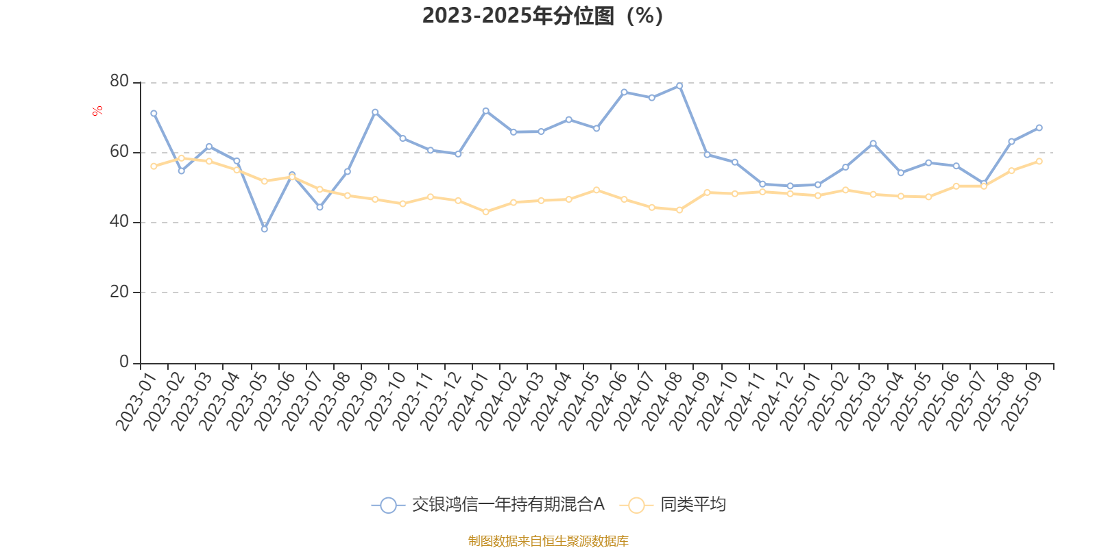 通过所选区间该基金净值增长率分位图,可以观察该基金与同类基金业绩比较情况。图为坐标原点到区间内某时点的净值增长率在同类基金中的分位数。