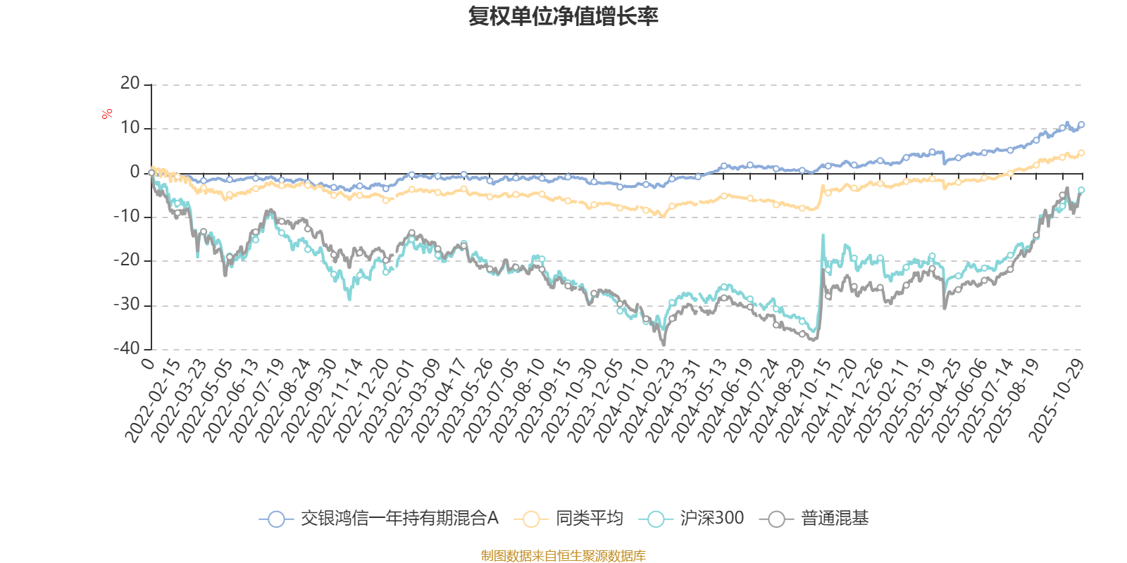截至10月29日,交银鸿信一年持有期混合A近三个月复权单位净值增长率为4.53%,位于同类可比基金144/629;近半年复权单位净值增长率为7.17%,位于同类可比基金210/629;近一年复权单位净值增长率为9.16%,位于同类可比基金205/623;近三年复权单位净值增长率为15.56%,位于同类可比基金168/557。