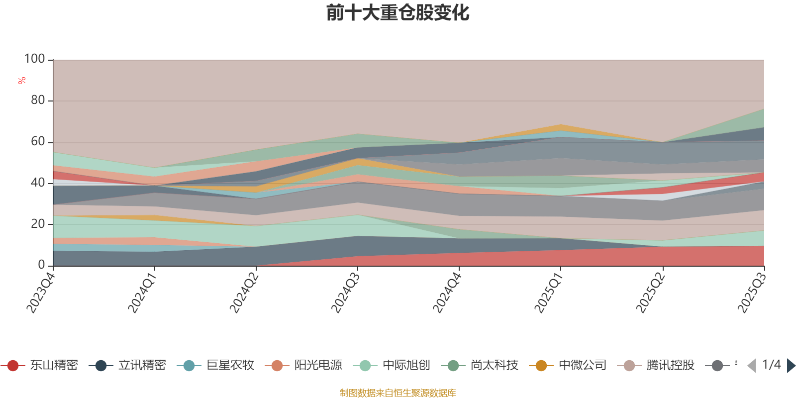 截至2025年三季度末,基金十大重仓股分别是宁德时代、腾讯控股、东山精密、胜宏科技、新易盛、中际旭创、亿纬锂能、中芯国际、三生制药、德昌电机控股。