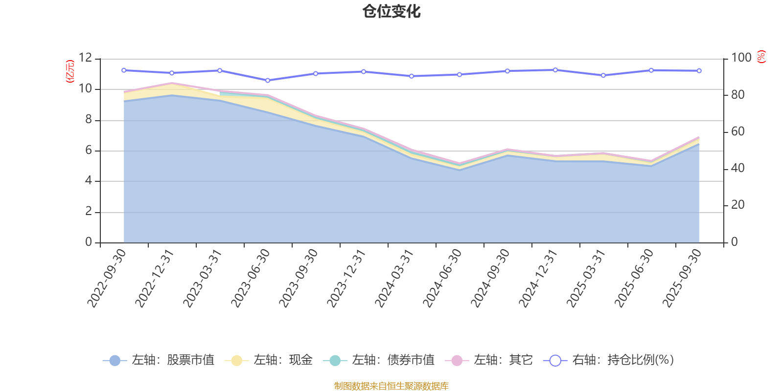 据定期报告数据统计,近三年平均股票仓位为92.15%,同类平均为85.66%。2024年末基金达到93.87%的最高仓位,2023年上半年末最低,为88.17%。