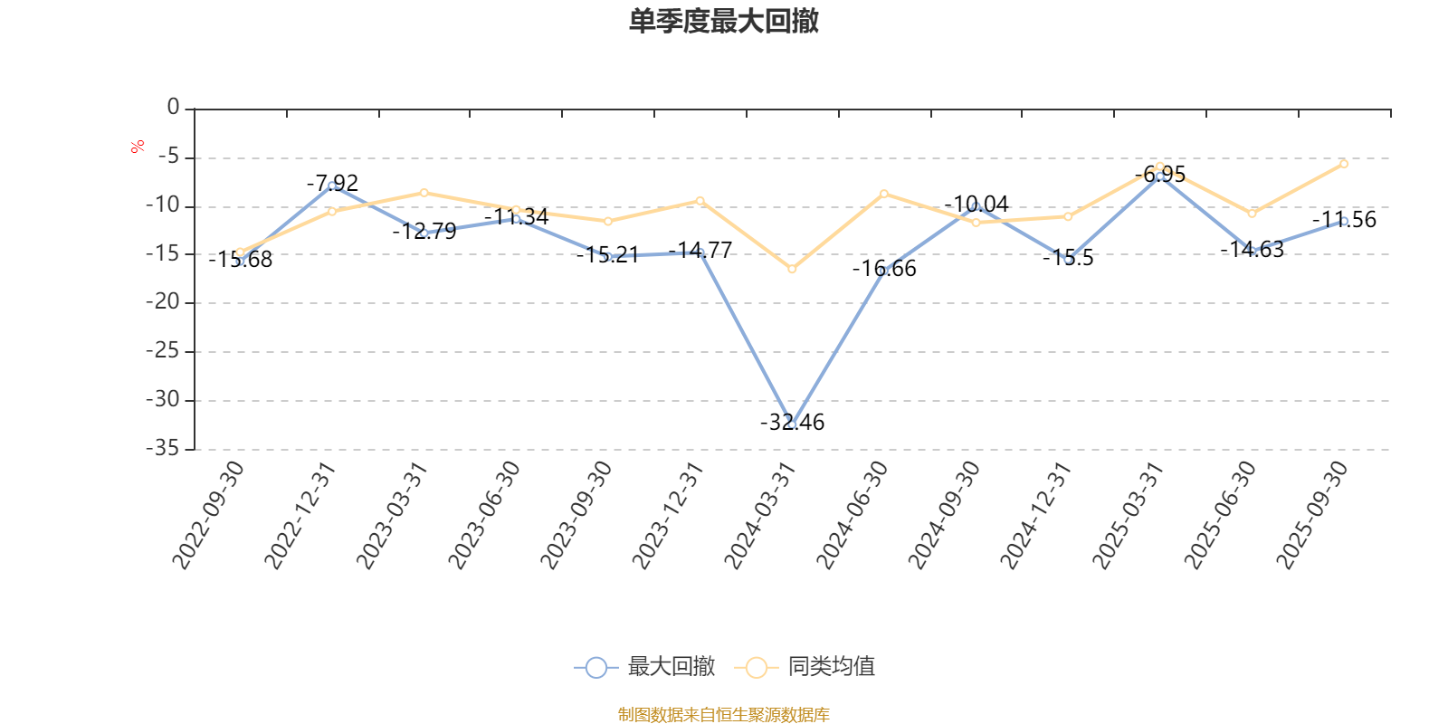 截至10月29日,基金近三年最大回撤为50.4%,同类可比基金排名488/513。单季度最大回撤出现在2024年一季度,为32.46%。
