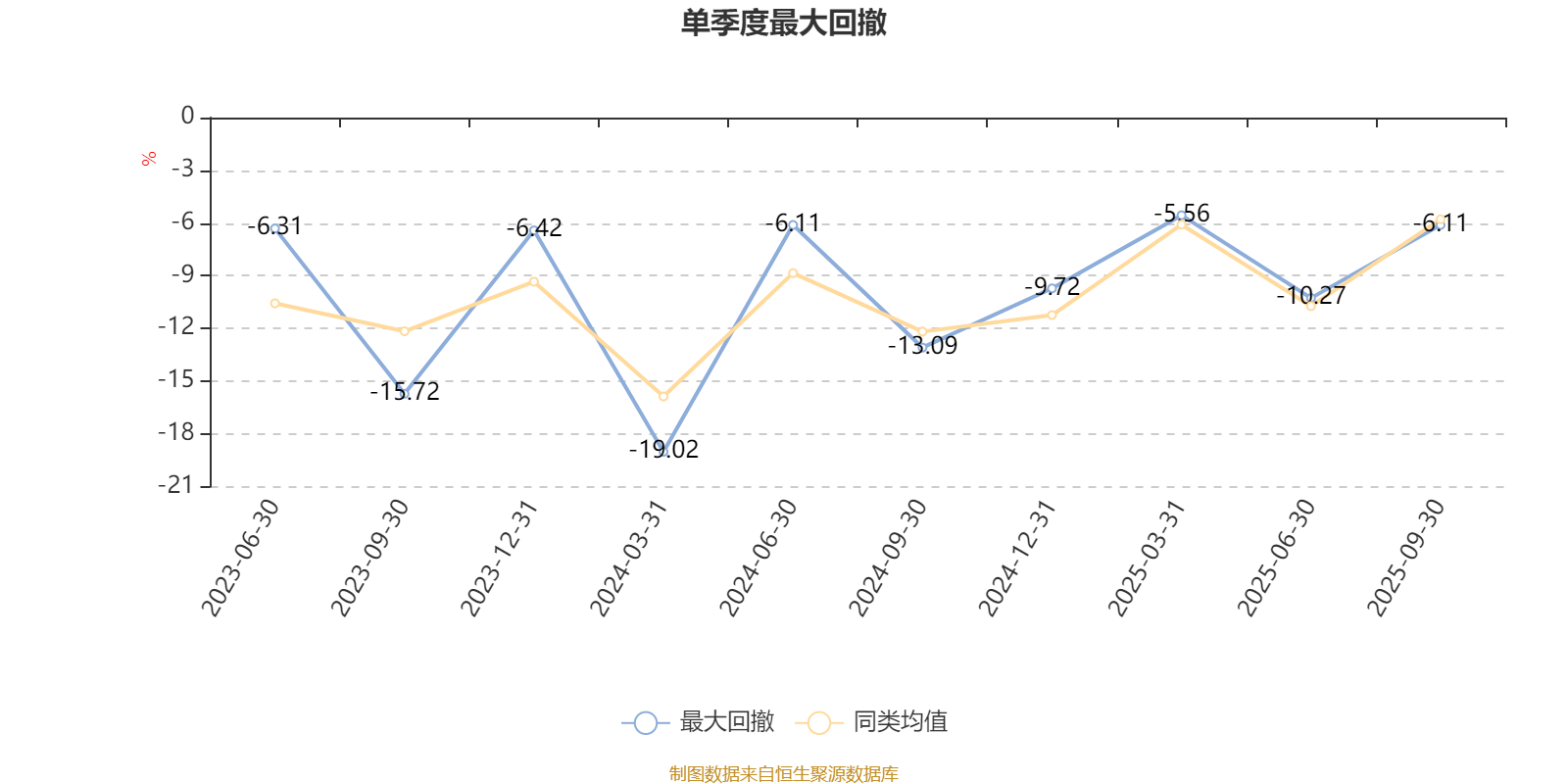 通过所选区间该基金净值增长率分位图,可以观察该基金与同类基金业绩比较情况。图为坐标原点到区间内某时点的净值增长率在同类基金中的分位数。