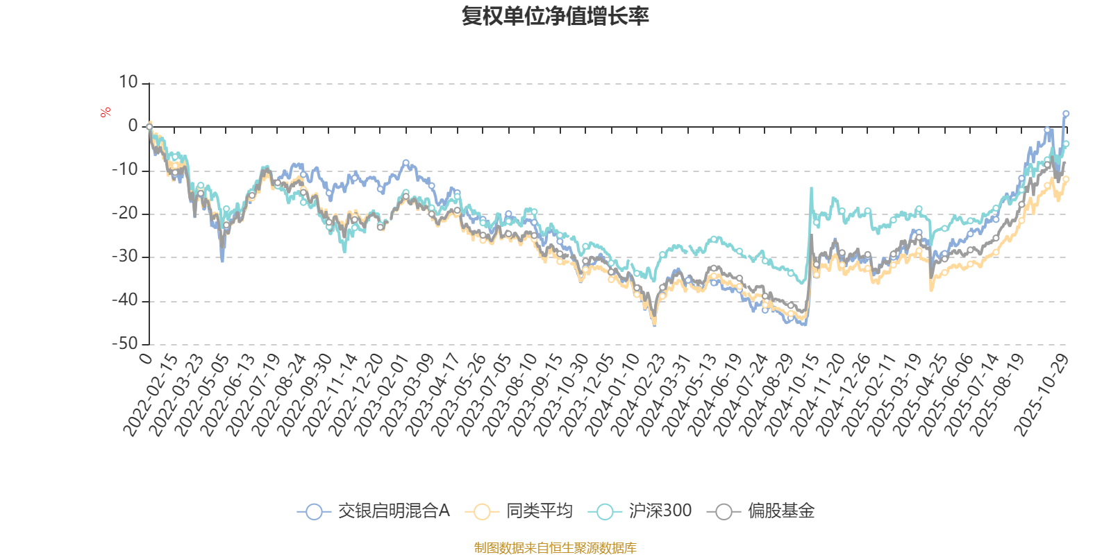 截至10月29日,交银启明混合A近三个月复权单位净值增长率为21.50%,位于同类可比基金52/185;近半年复权单位净值增长率为45.69%,位于同类可比基金33/185;近一年复权单位净值增长率为47.28%,位于同类可比基金34/181;近三年复权单位净值增长率为20.57%,位于同类可比基金94/175。