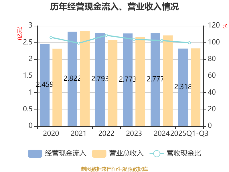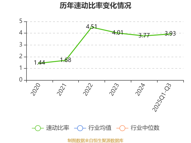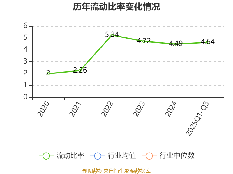 2025年前三季度,公司流动比率为4.64,速动比率为3.93。