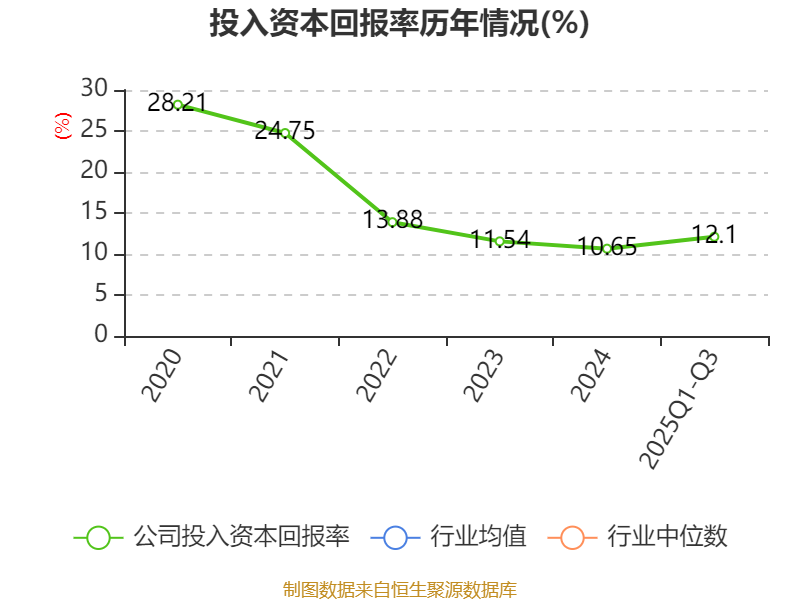 盈利能力方面, 2025年前三季度公司加权平均净资产收益率为12.58%,同比上升3.33个百分点。公司2025年前三季度投入资本回报率为12.1%,较上年同期上升3.28个百分点。