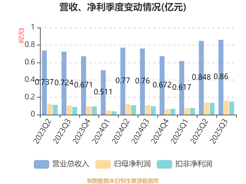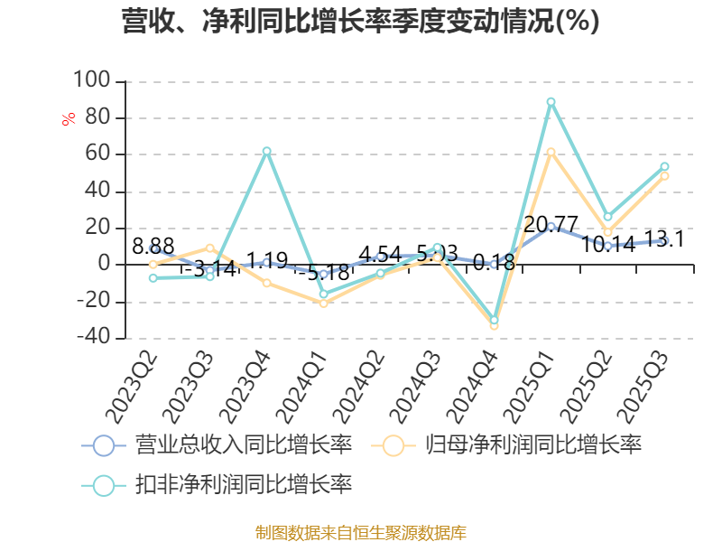 负债重大变化方面,截至2025年三季度末,公司应付票据及应付账款较上年末增加13.6%,占公司总资产比重上升0.56个百分点;短期借款较上年末减少13.03%,占公司总资产比重下降0.47个百分点;应付职工薪酬较上年末减少12.67%,占公司总资产比重下降0.42个百分点;应交税费较上年末增加101%,占公司总资产比重上升0.39个百分点。