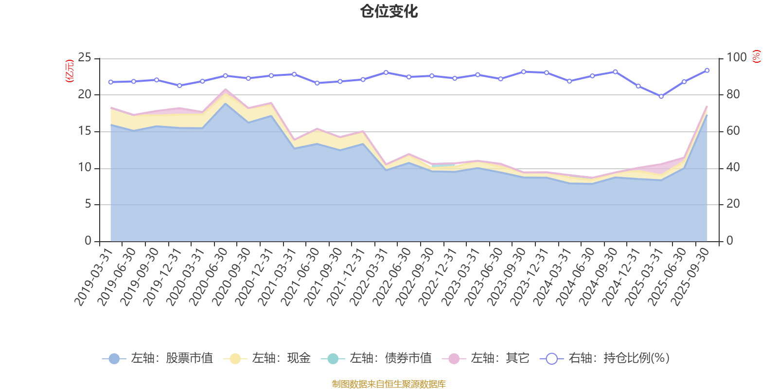 据定期报告数据统计,近三年平均股票仓位为89.1%,同类平均为87.62%。2025年三季度末基金达到93.43%的最高仓位,2025年一季度末最低,为79.24%。
