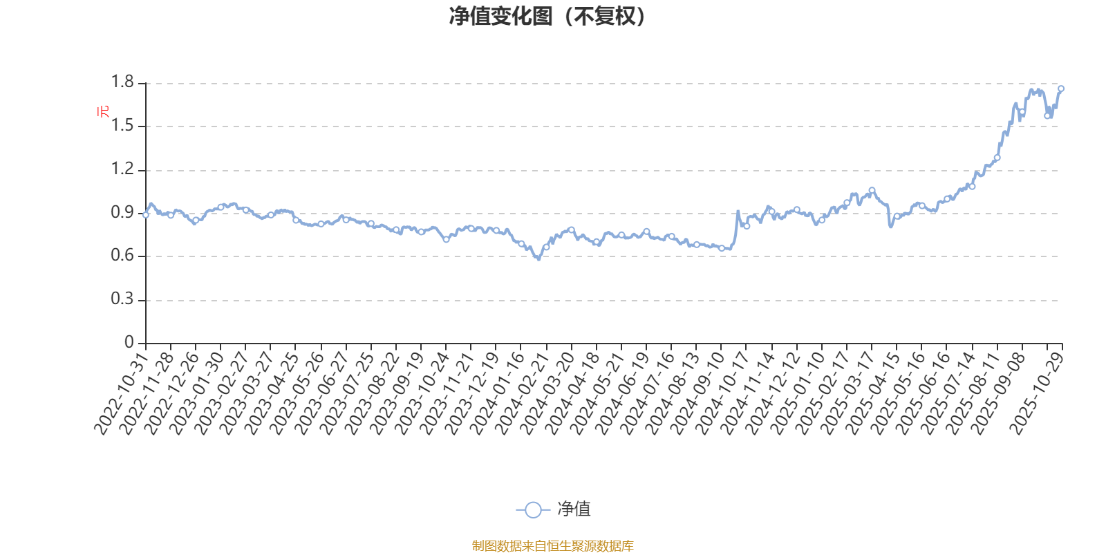通过所选区间该基金净值增长率分位图,可以观察该基金与同类基金业绩比较情况。图为坐标原点到区间内某时点的净值增长率在同类基金中的分位数。