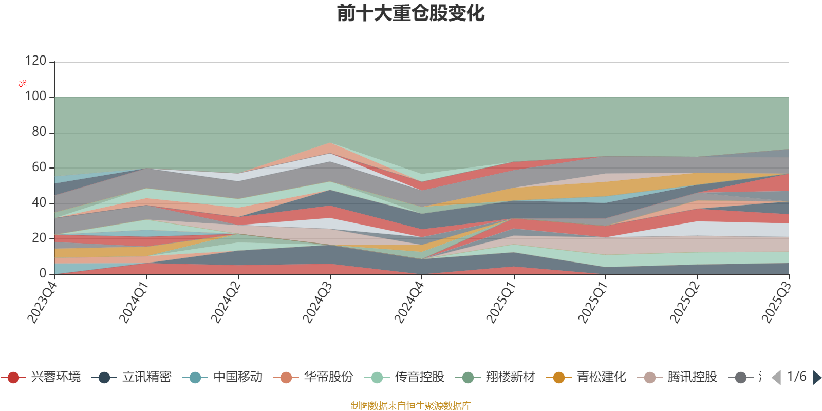 该基金持股集中度较高。截至2025年三季度末,基金十大重仓股分别是小米集团-W、赛轮轮胎、腾讯控股、宁德时代、途虎-W、立讯精密、传音控股、瑞丰新材、人福医药、远大医药。